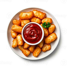 Fried shrimp tossed in Boom Boom sauce served with tater tots