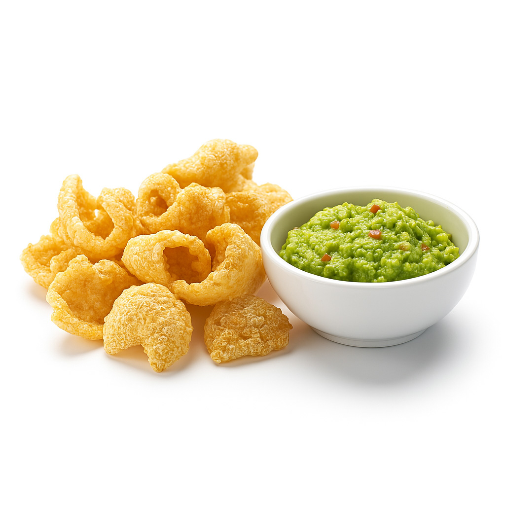 Corn tostada chips served with salsa, guacamole [[&}] melted queso blanco