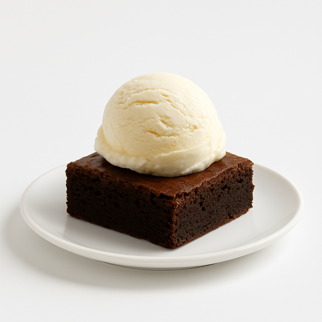 Chocolate brownie topped with Häagen-Dazs vanilla ice cream